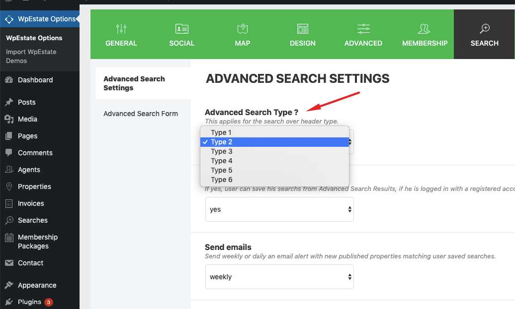 Home / Advanced Search Settings, Theme Options / Advanced Search Settings – Theme OptionsAdvanced Search Settings – Theme Options Advanced Search type Change the search type (each type has different options) Save Search Users will be prompted to login/register to save search after doing a search to save and get notifications for that query.