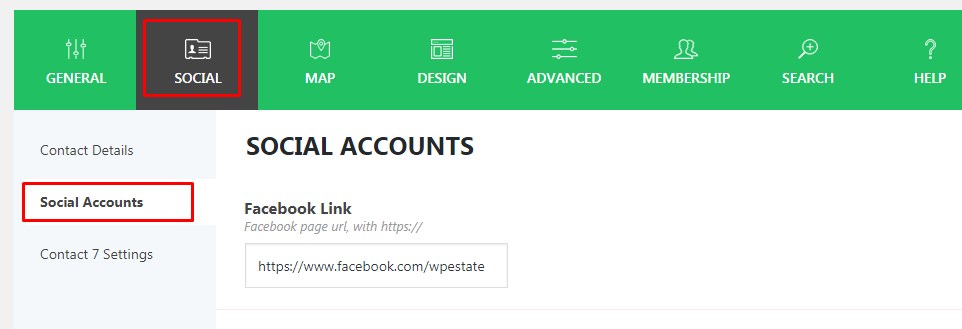 Next to go Theme Options – Contact & Social and fill in the APP details: