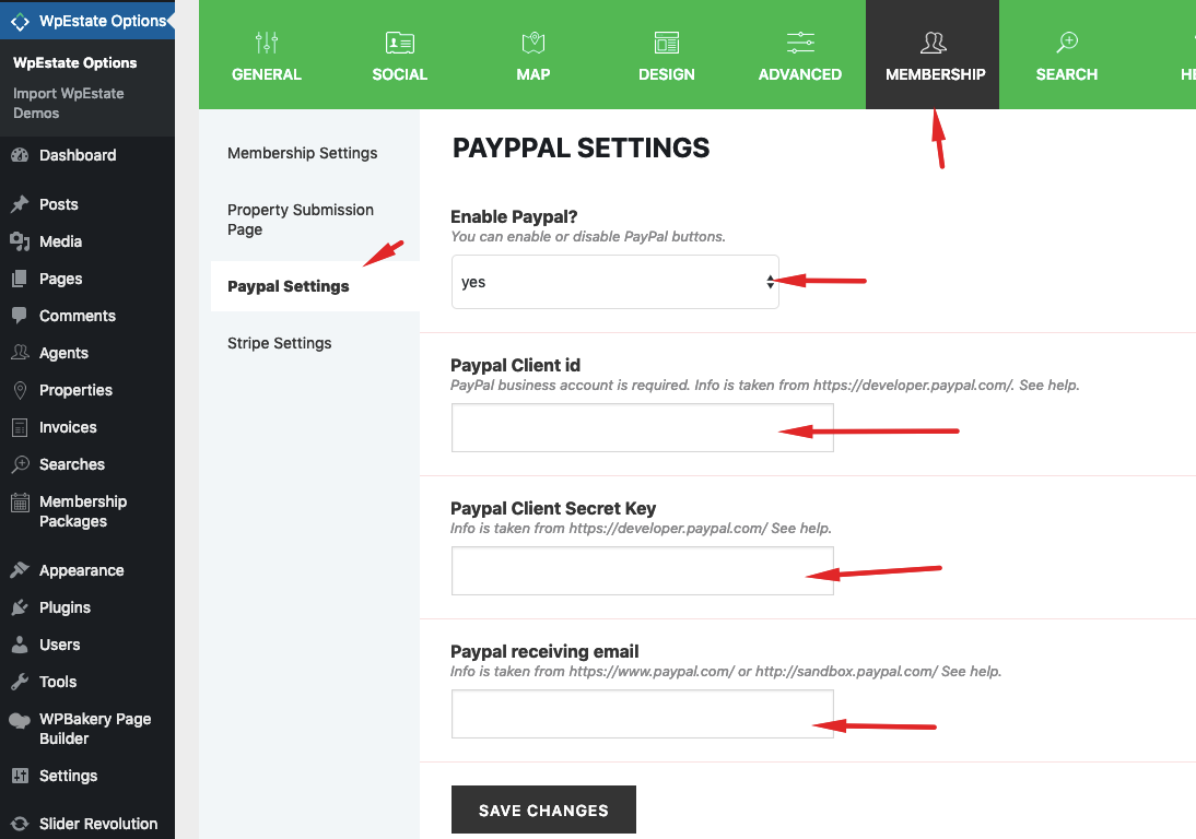 The settings for PayPal can be found in Theme Options -> Membership -> PayPal Settings.