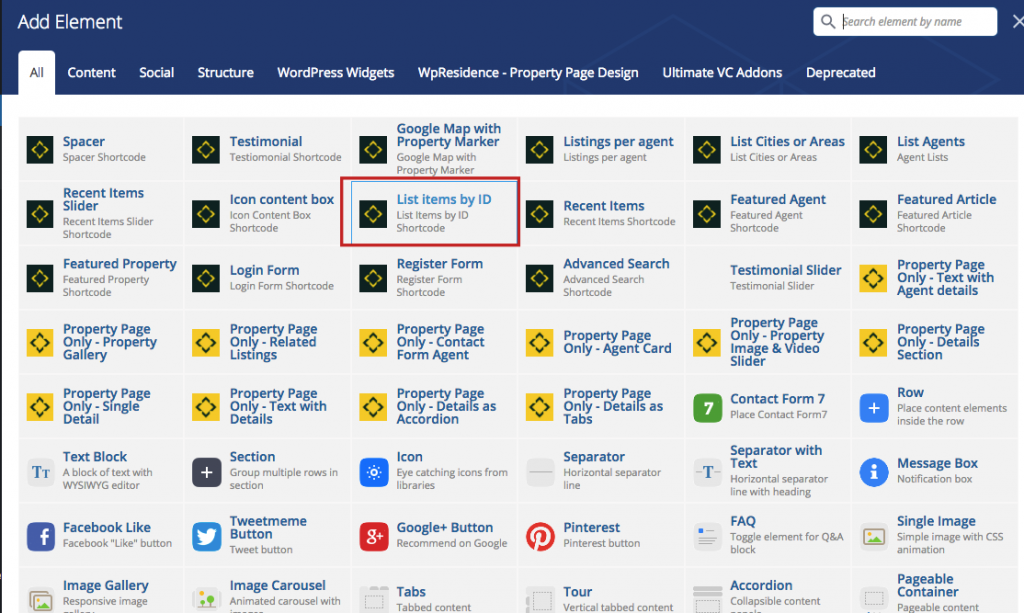 Add the properties IDs separated by a comma and select the other shortcode options: how many listings per row, how many listings in total (total items must match total ids)