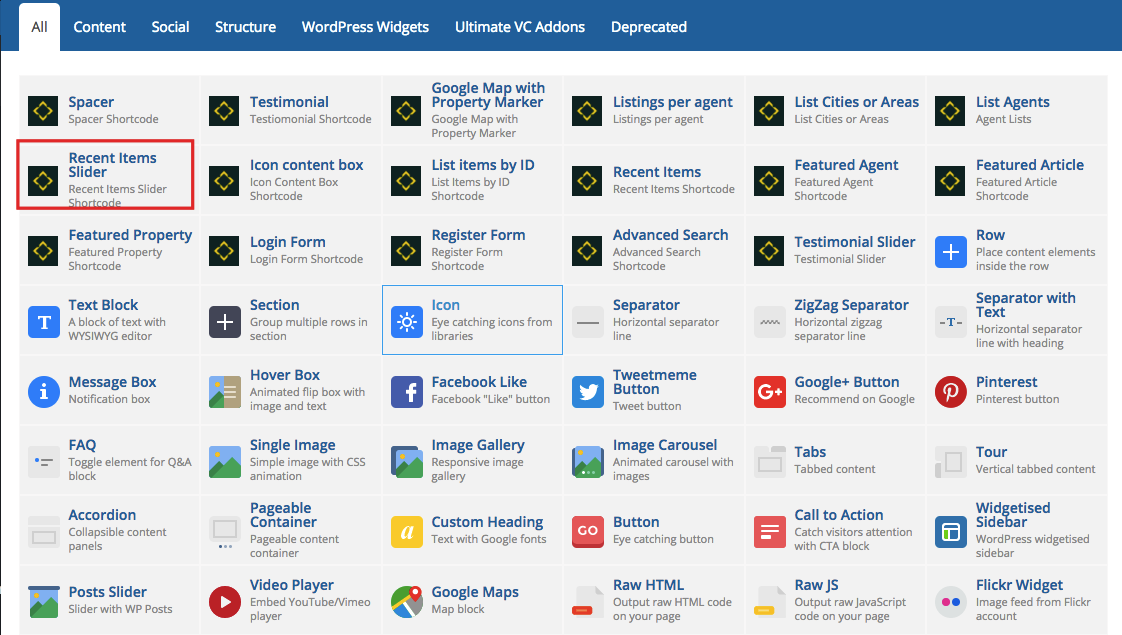 Recent items shortcode is used for Properties and for Articles. Only some options apply to articles.